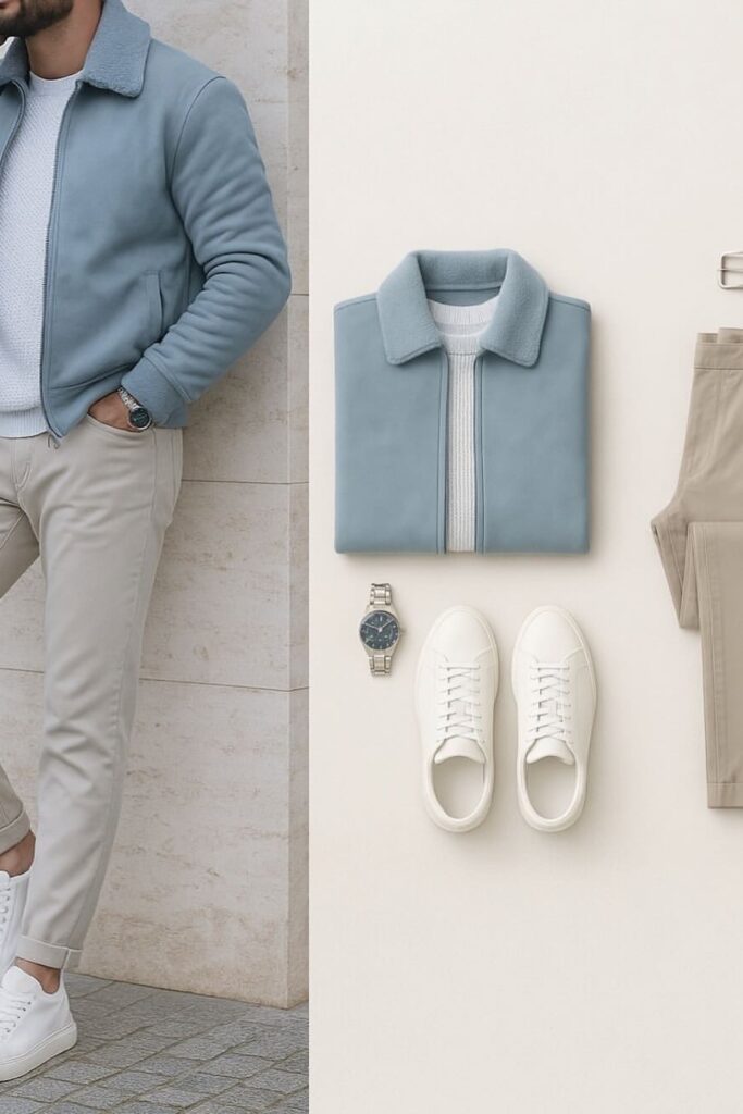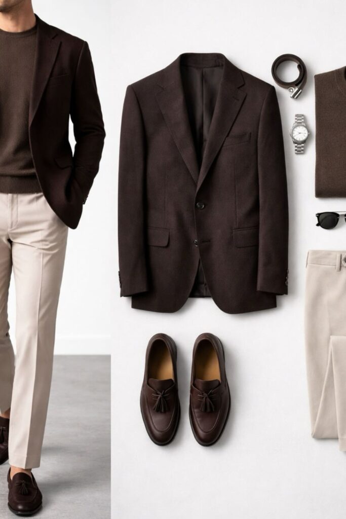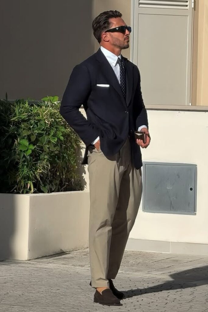 When you wear chinos and a light jacket, you have a simple business casual look that feels natural, balanced, and well-planned.