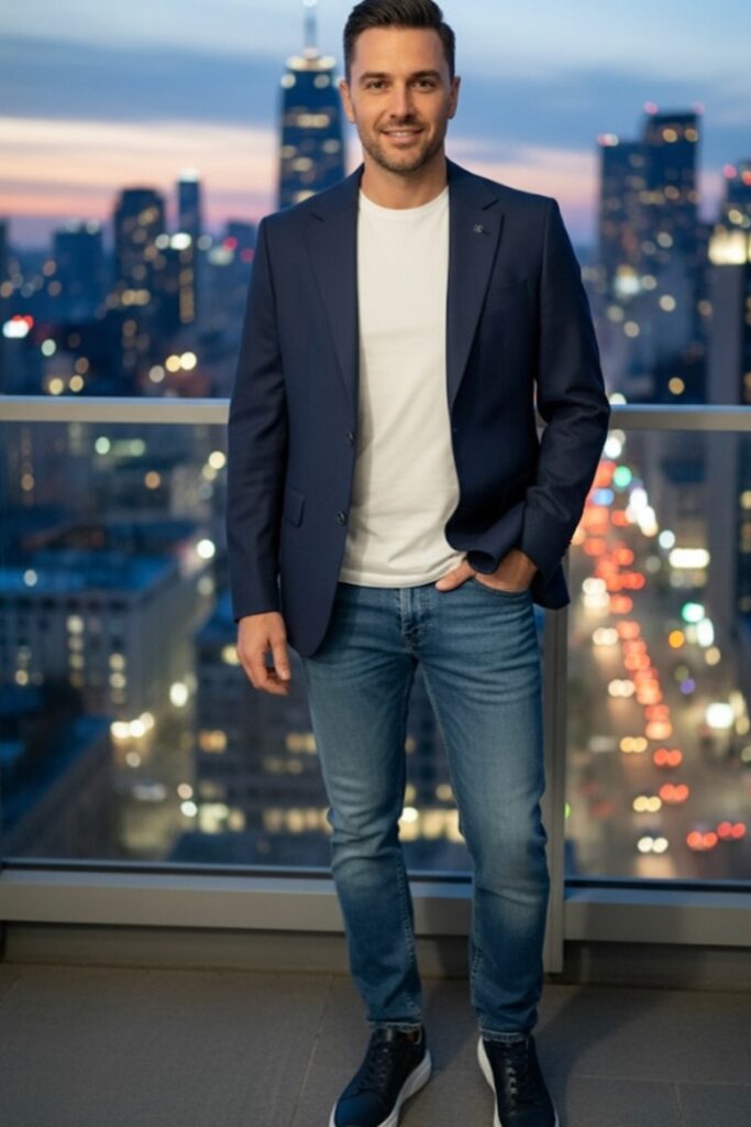 A tailored blazer is a great way to look more professional without wearing a full suit, especially in offices that are polished but flexible.