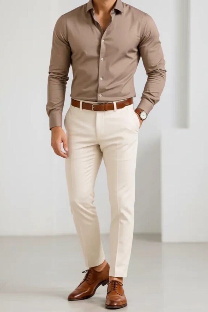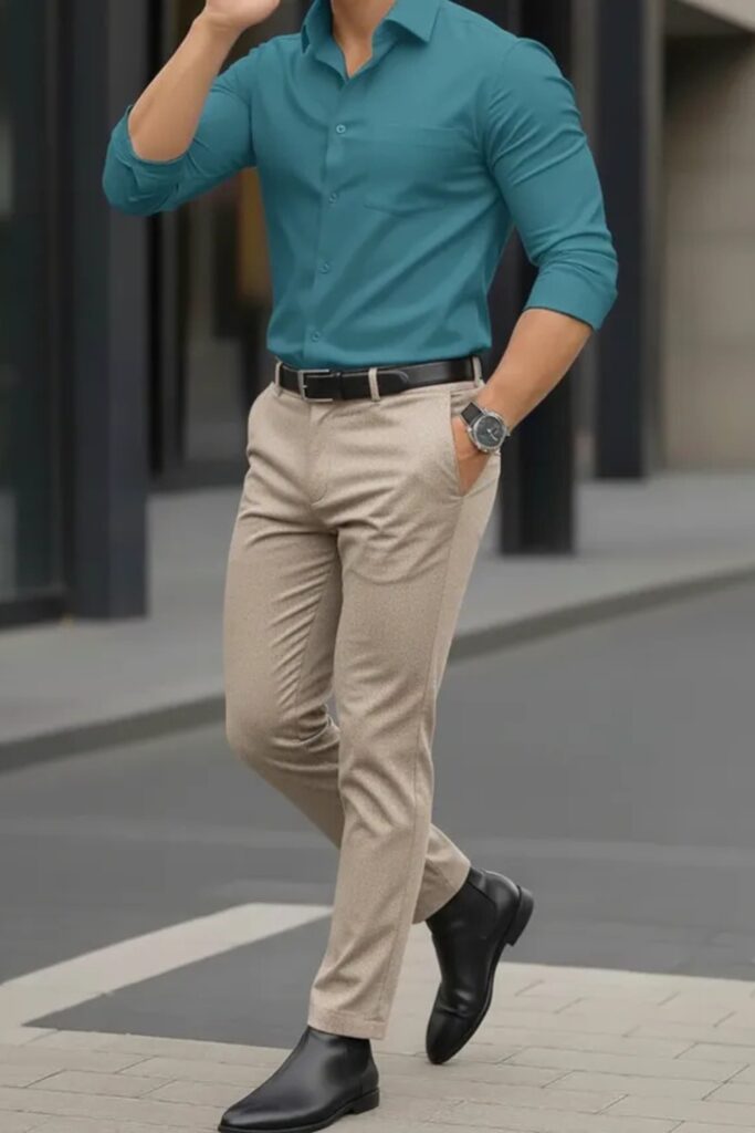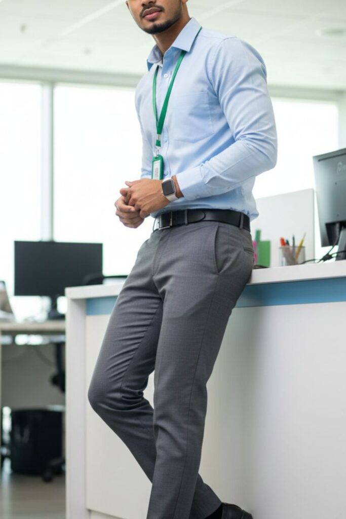 You don’t need to wear a full suit to appear good. Begin with clean basics like fitting pants, a well-pressed shirt, or a polo.