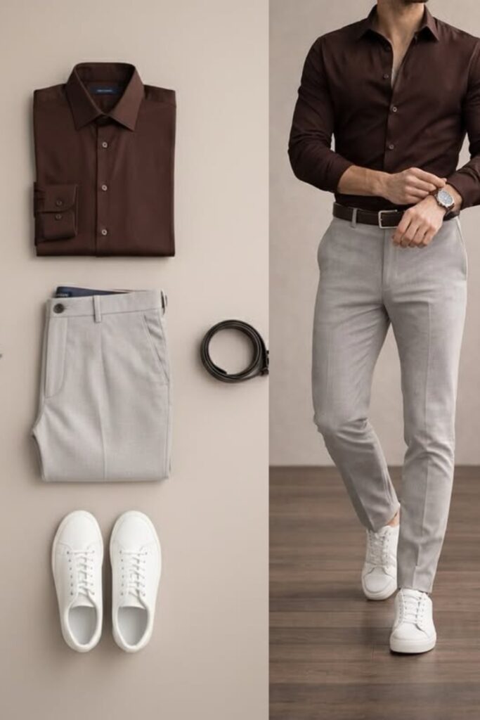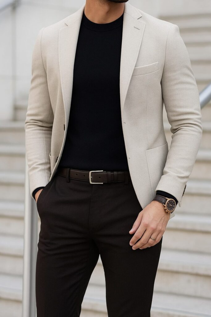 Monochrome palettes make business casual look sharper right away by making a crisp visual line that feels planned and controlled.