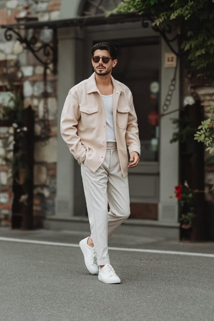This look is good for warm days when you want to feel good about yourself, but you don’t need to wear a lot of layers or have rigid tailoring.