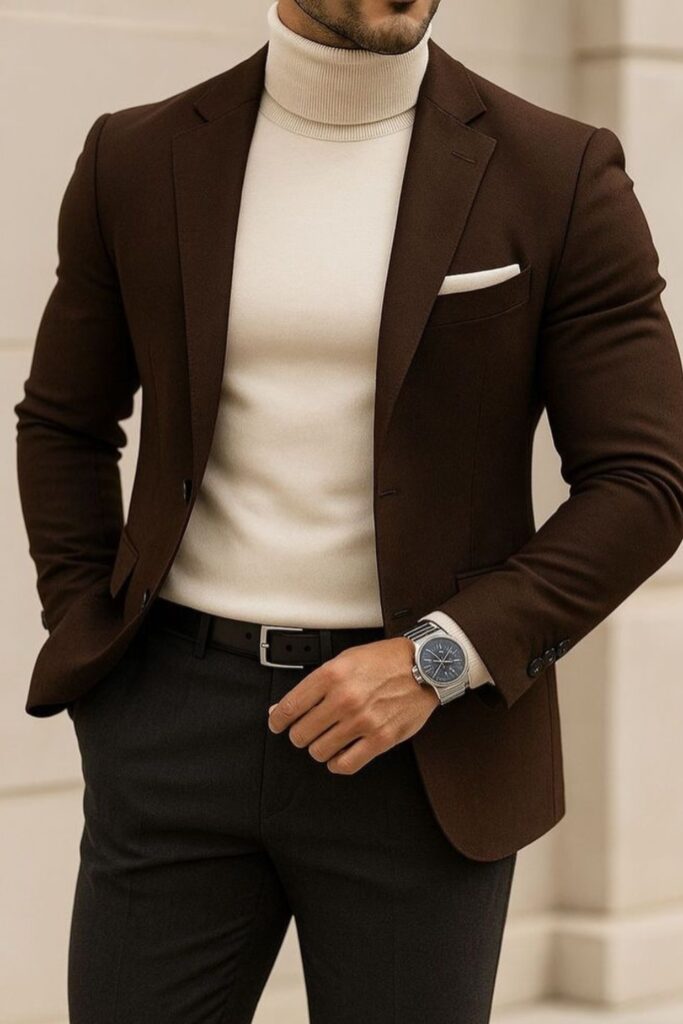 When you want to feel strong, polished, and quietly dominant in business casual clothes, a fitting turtleneck is the perfect replacement for a shirt.