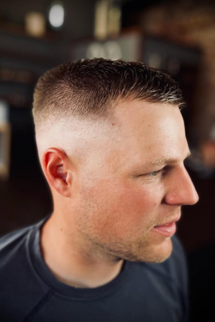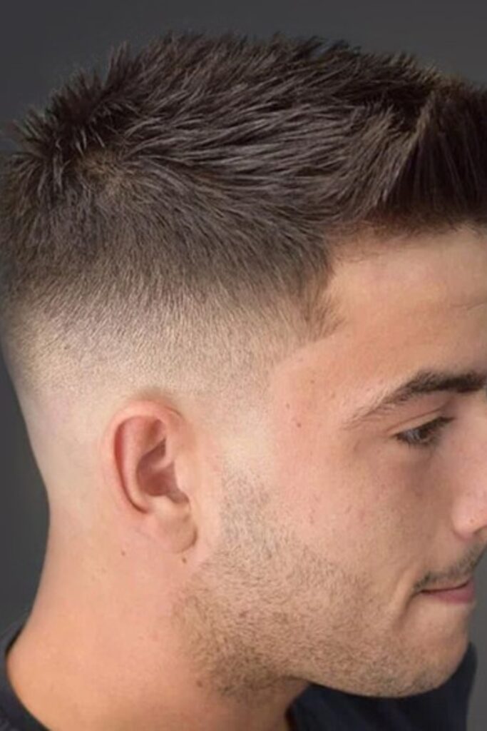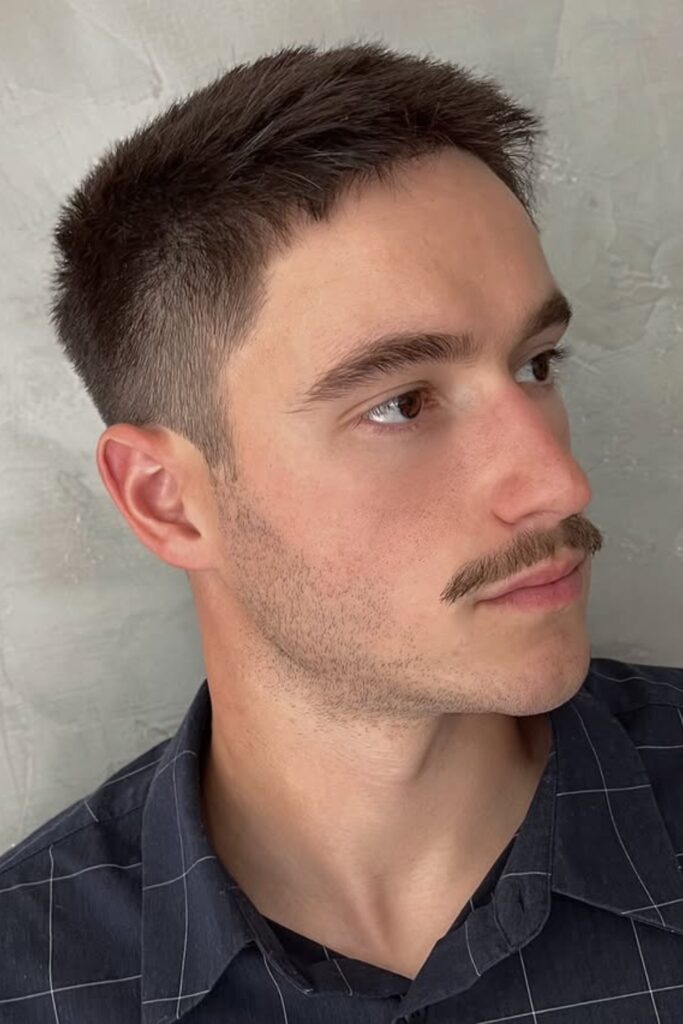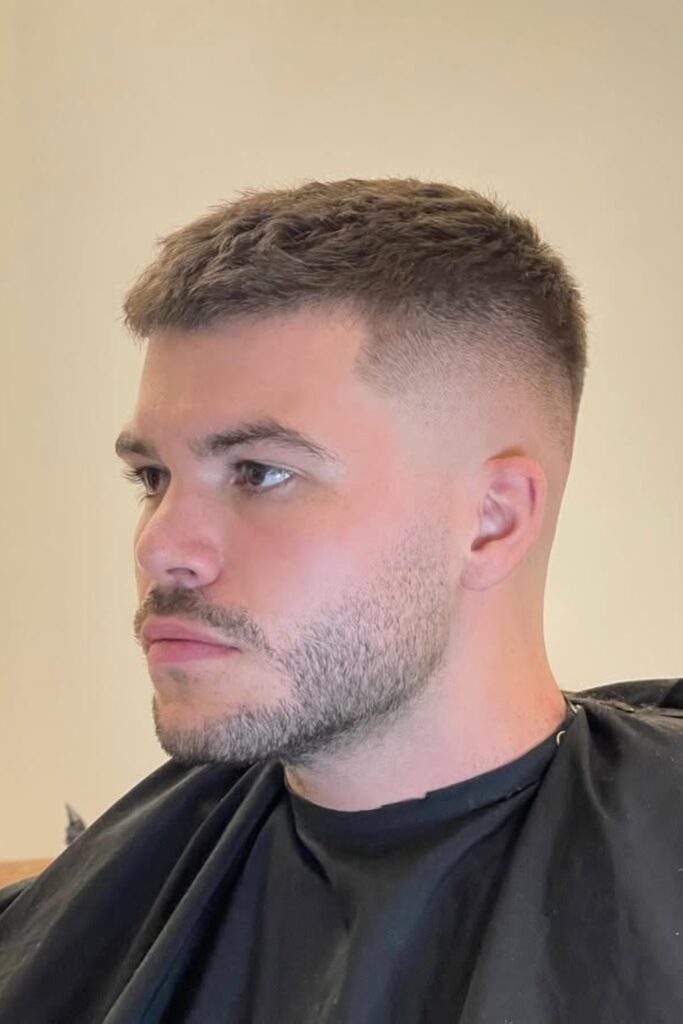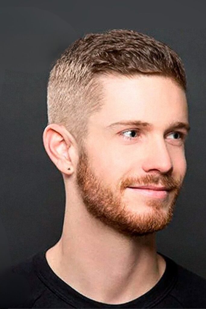 It’s especially attractive for men with light or medium hair who desire a softer version of the classic crew cut.