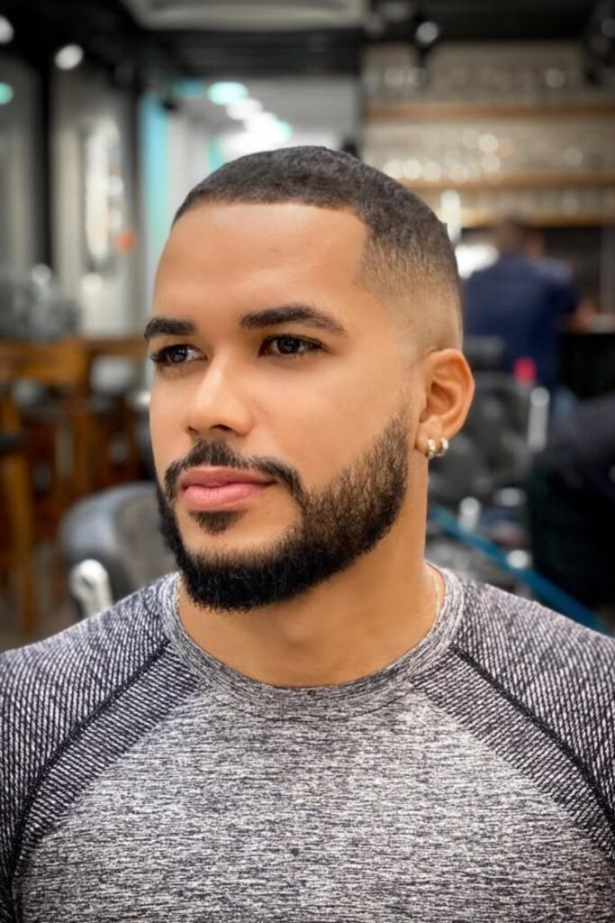 It’s a favorite among men who want something that looks sharp and is easy to take care of. For a clean contrast, keep the fade low and the edges squared.