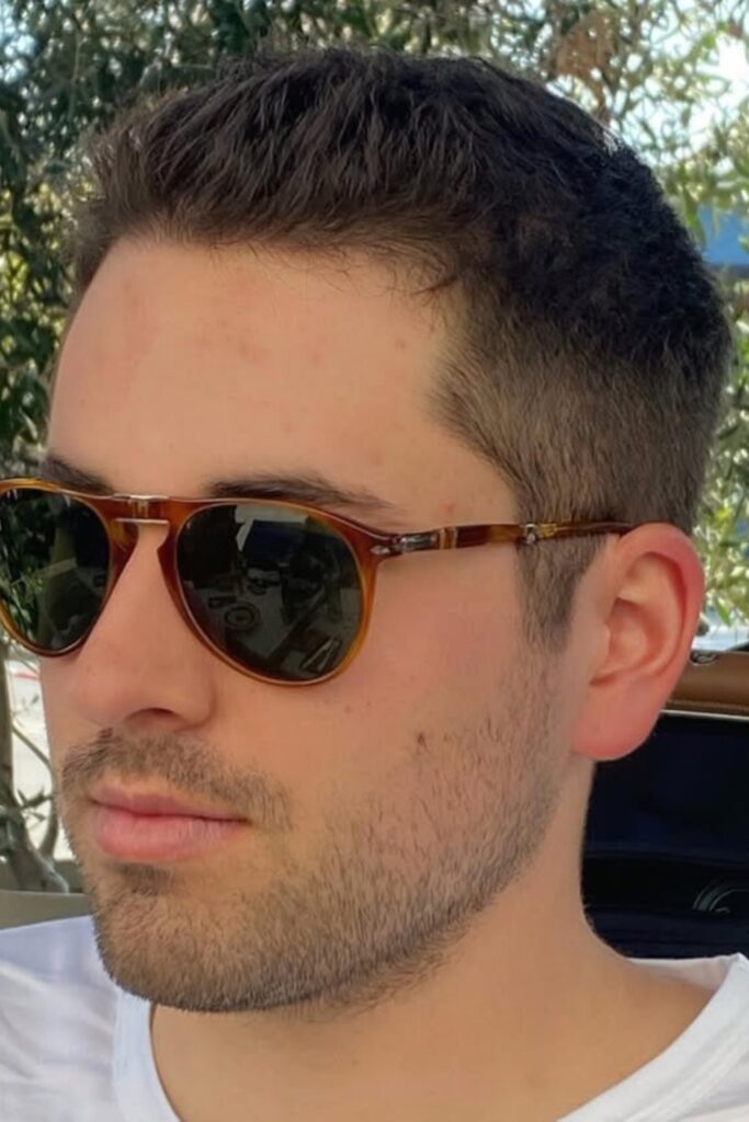 The ends of the crew cut are in a cycle. It’s clean, organized, and sharp, and it’s made to fit your face, not fight it.