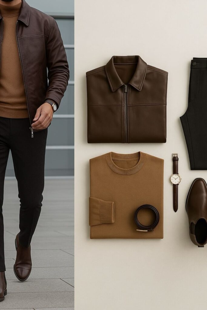 Brown leather softens the dark academia look, giving warmth without losing seriousness. This is especially true when worn with muted knits and cut black pants.