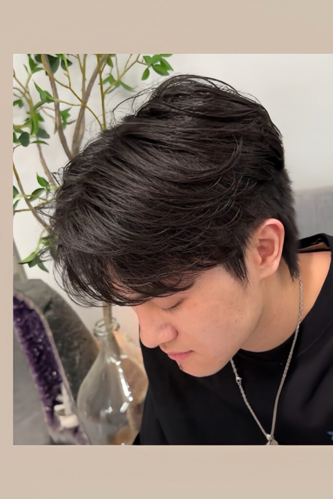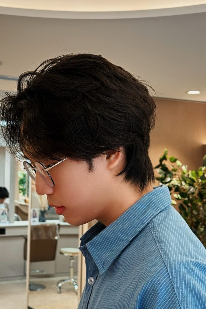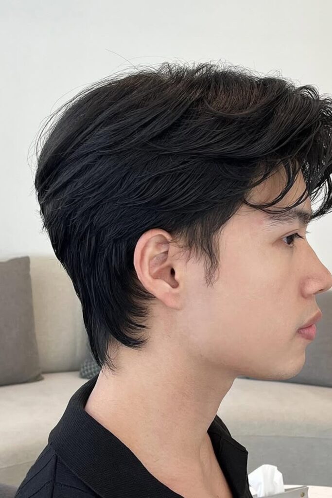 It’s a go-to for guys who desire the polished look of K-dramas without a lot of style. Ask for a two-block base with layers that are medium-length and a curved front fringe.