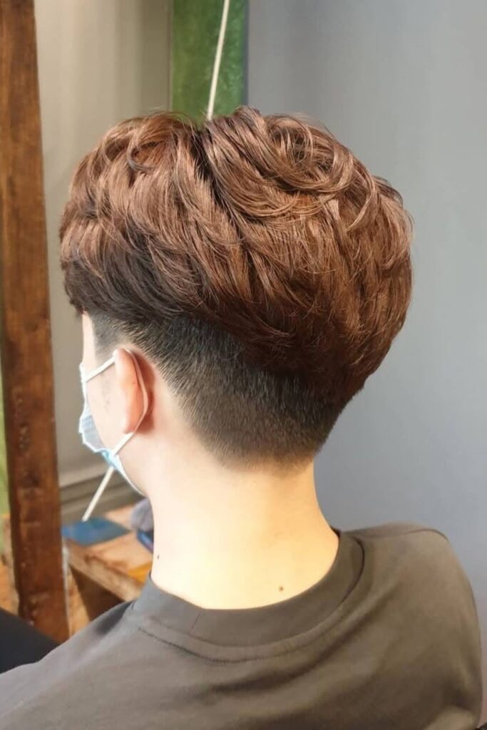 Ask your stylist for a light wave perm with a gentle taper, then apply a diffuser and curl cream to maintain the waves full yet controlled.