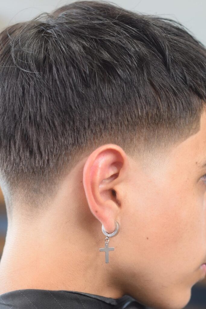 If you want a clean but edgy look, a short low taper fade with fringe is the way to go. The low fade keeps the sides clean, while the fringe gives the front a fresh, youthful look.