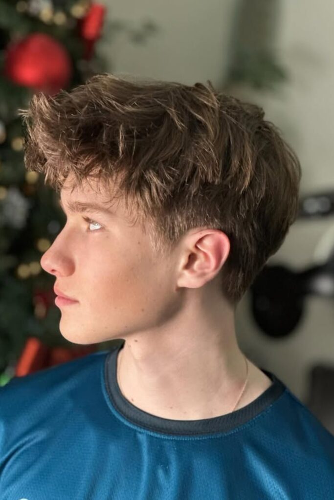 To get the look back, ask for a low fade with a longer top that has texture. You may style it with a light mousse or styling gel to make the natural volume and texture stand out.