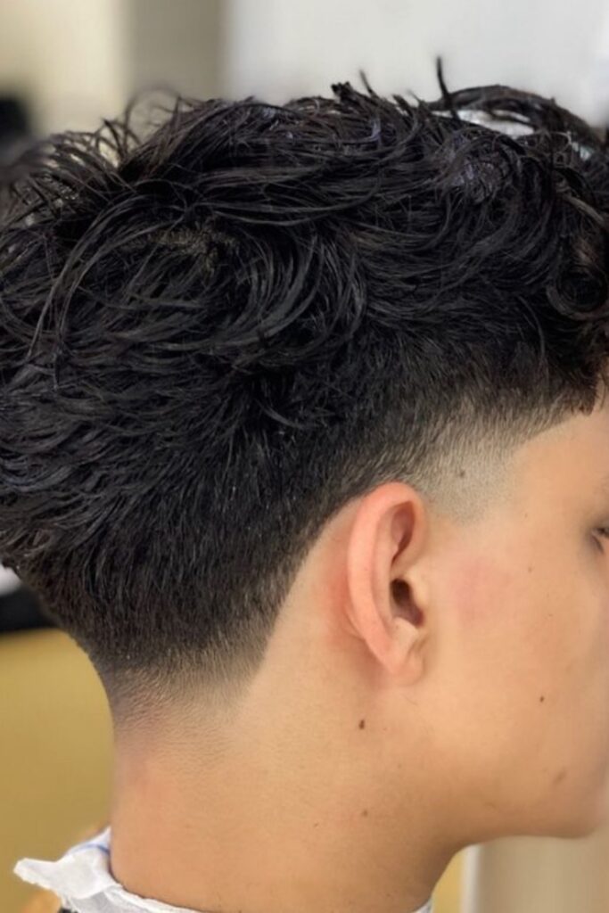 This style is great for wavy to curly hair and is easy to take care of. To get this look again, ask for a low fade and maintain the top long to bring out the natural texture.