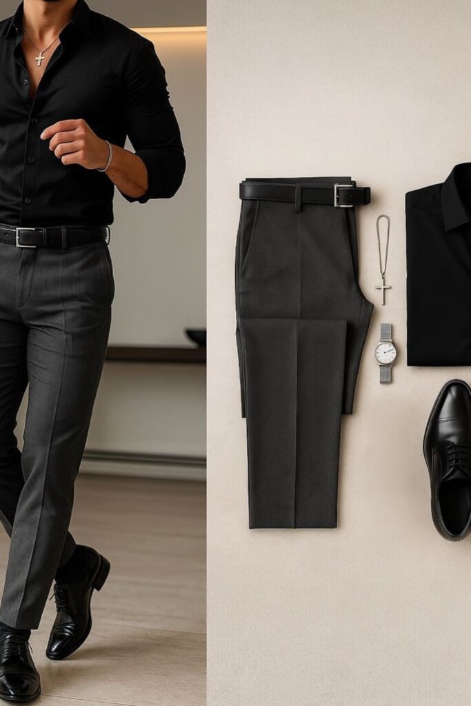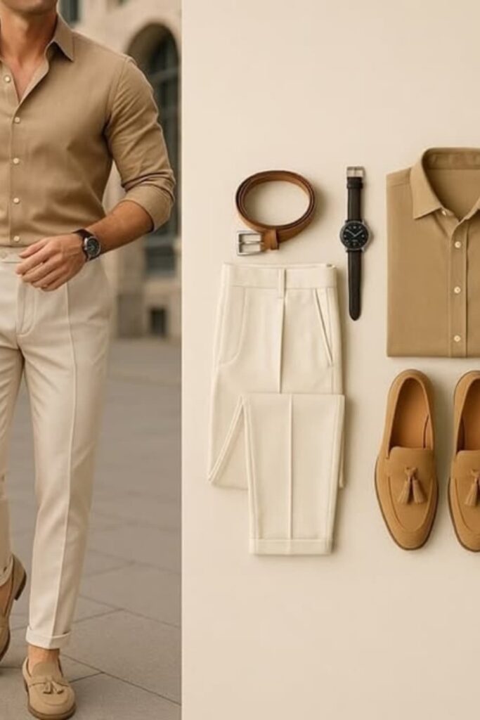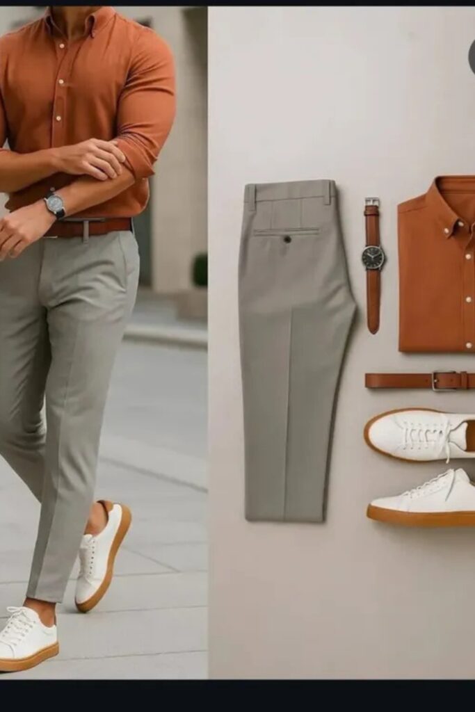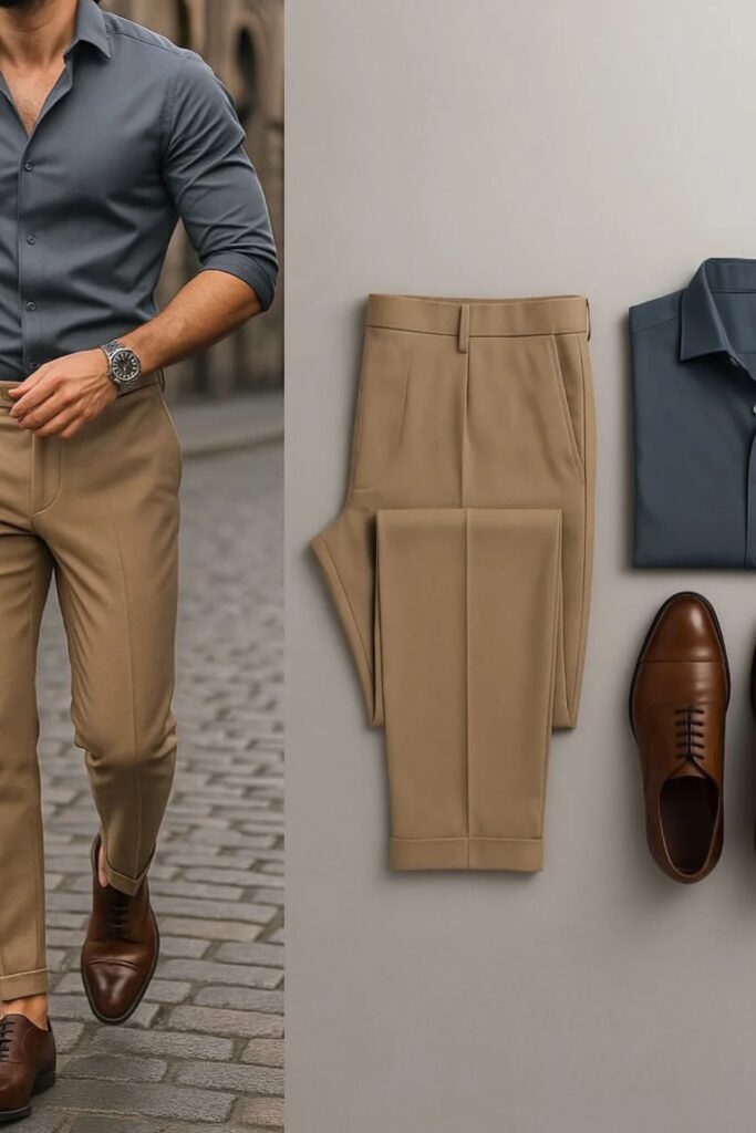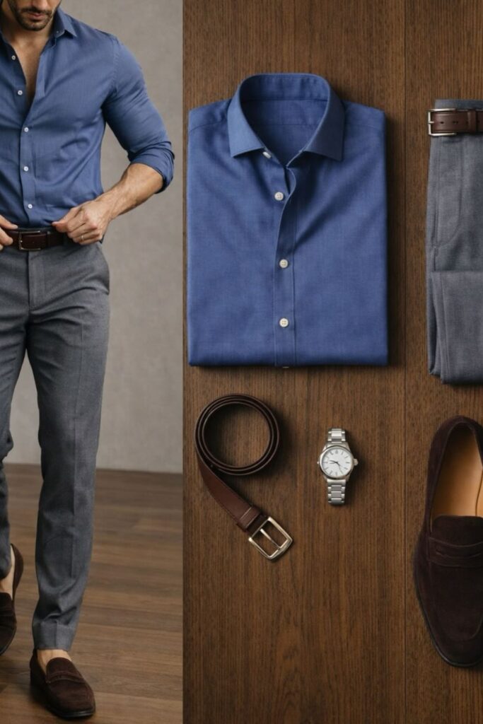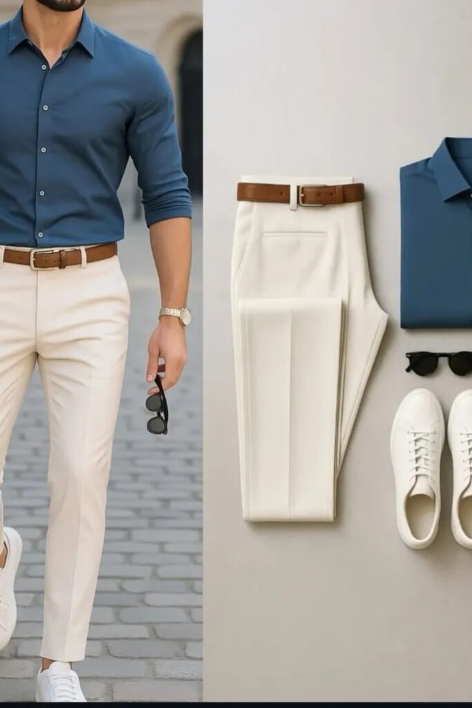 This combination looks best when the fit is right and the shirt stays tucked in, which makes the whole appear neat and planned.