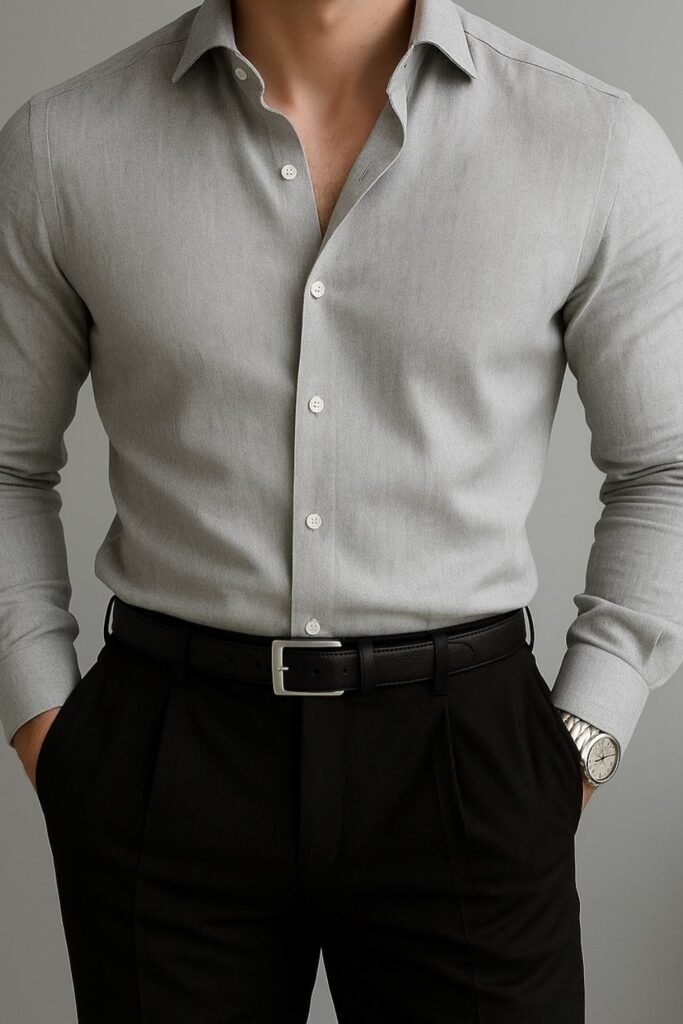 When you wear soft gray shirts with darker pants in structured business settings, they provide a calm, confident basis that feels like it was planned.