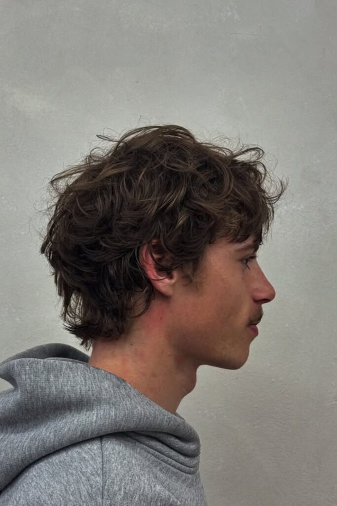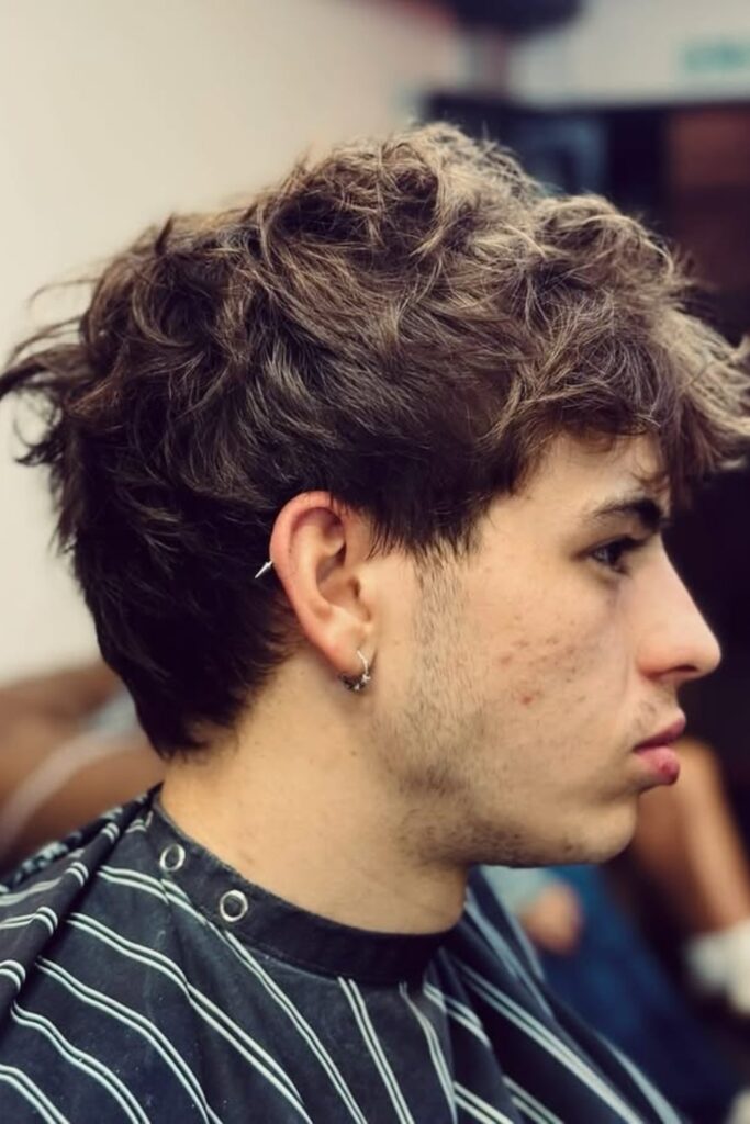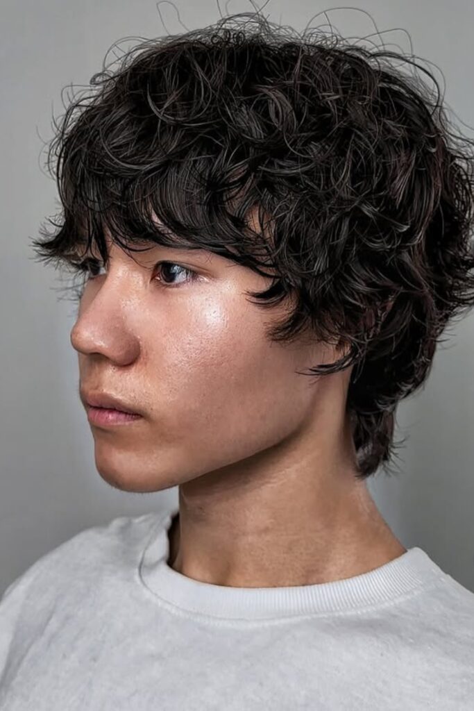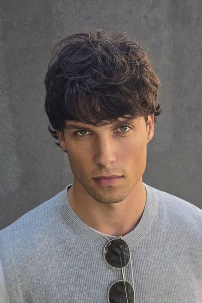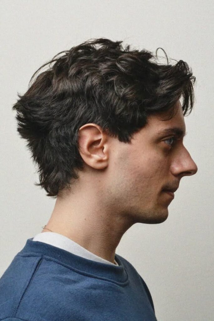 The top is short, the sides are layered, and the back is loose. It’s great for guys with naturally curly hair who want definition without stiffness.