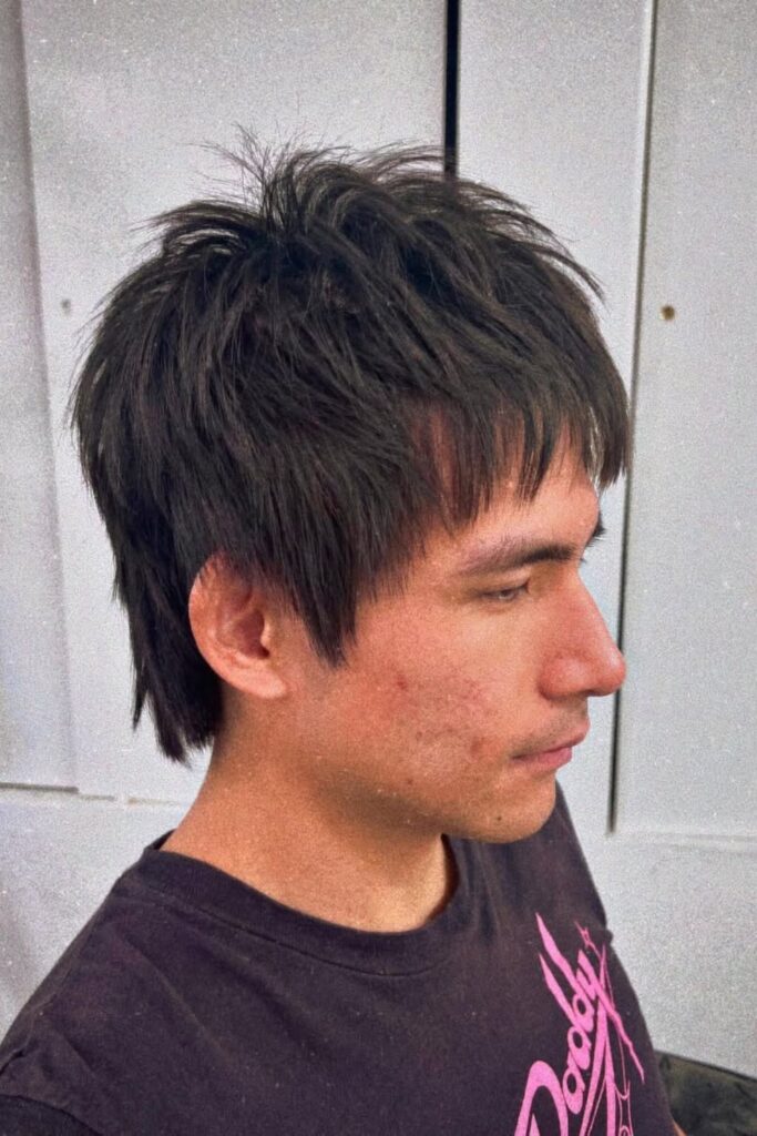 The trimmed fringe keeps the face open, while the spiky crown adds height and contrast. It’s great for males who have straight, thick hair and don’t want to spend a lot of time styling it.