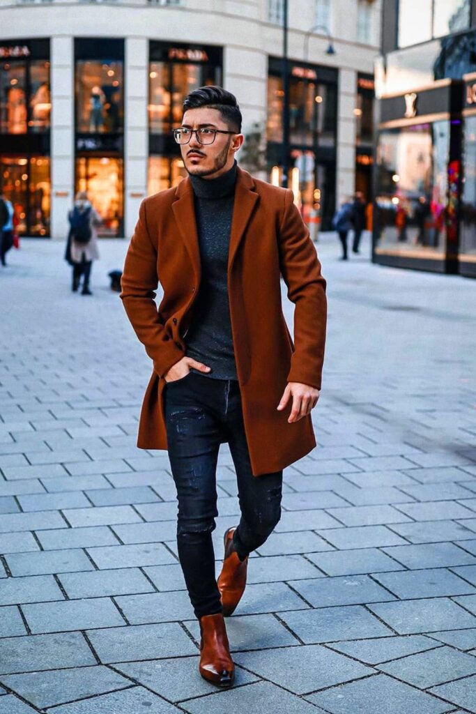 Slim jeans and boots help keep proportions in check, showing that classic men’s clothing can still fit in with modern streetwear without looking out of place.