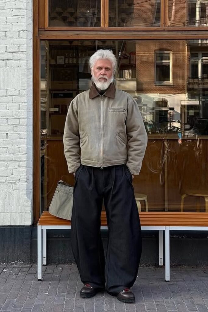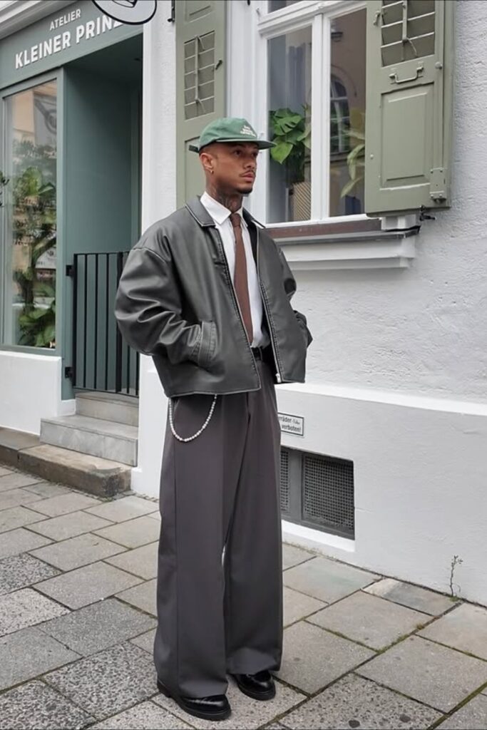 This mix feels modern because it combines the confidence of classic menswear with the casual proportions of streetwear, making it easy to dress for the city today.