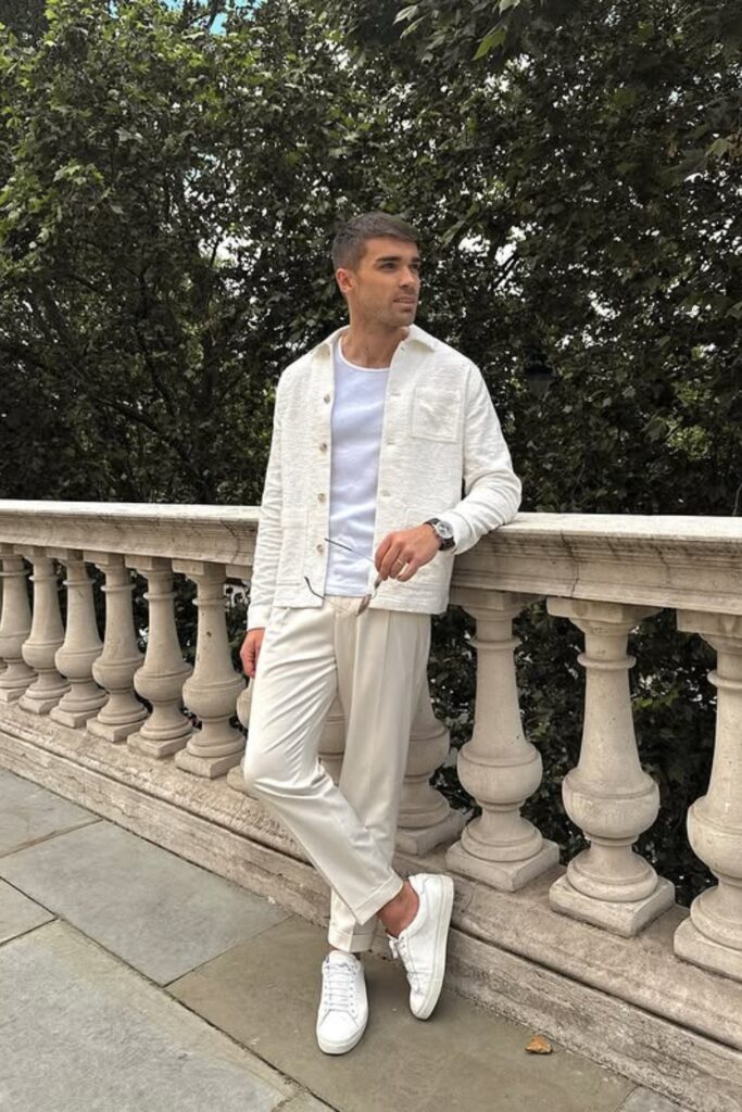 Lastly, make sure your outfit is minimal yet on purpose. A clean T-shirt or linen shirt with chinos or fitted shorts looks far better than baggy exercise gear right away.