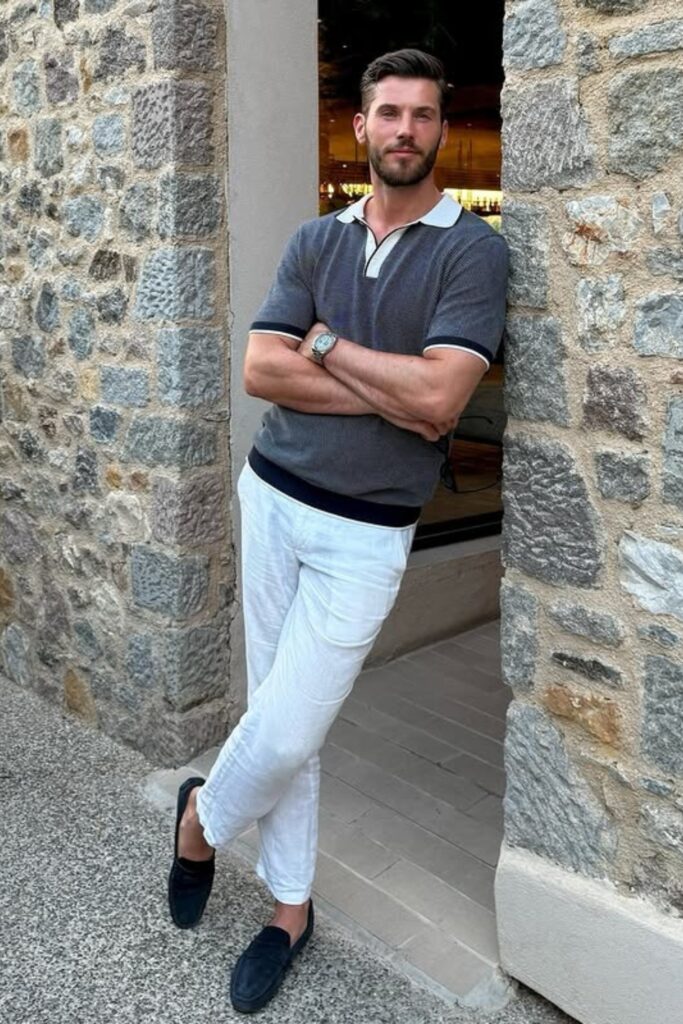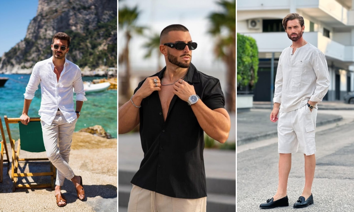 Start with a fitted polo shirt, a lightweight linen shirt, a clean white T-shirt, and chinos that let air flow through.
