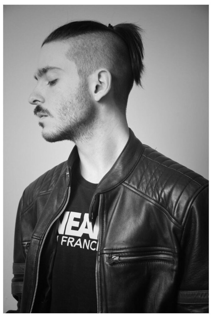 The freshly trimmed sides draw attention to the long top, which is knotted neatly at the back. This gives the hair a sharp and balanced look.