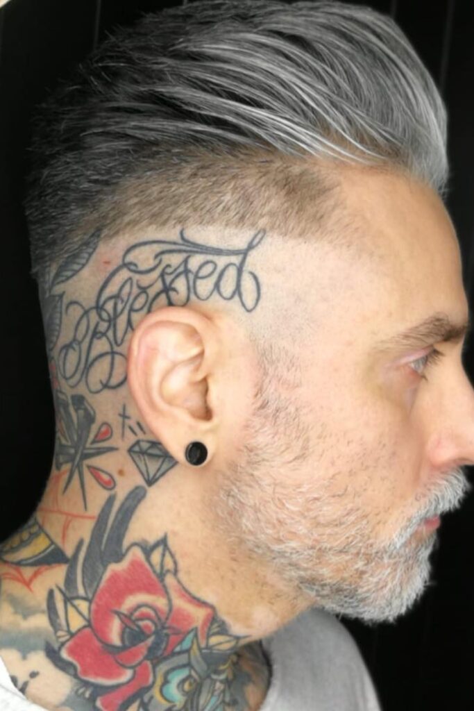 This silver smooth undercut is both confident and classy. The nicely faded sides bring out the tattoo art and precise hairline.