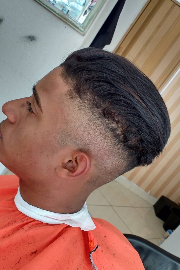 It’s a statement appearance for men who appreciate a sharp, precise style with an edge. Works best on hair that is straight or relaxed.