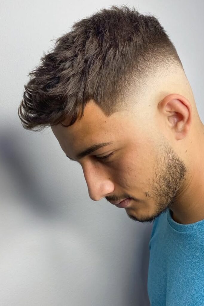 The fade around the ears balances the rough texture with the clean edges, making it great for guys who want things that are easy to tell apart. Works well with hair that is naturally wavy or fine.