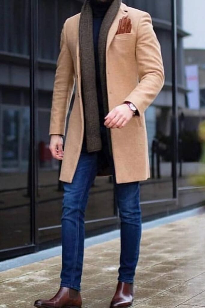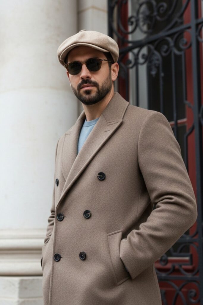A double-breasted camel coat is a great way to start a vintage look. It gives you the classic gentleman look that you find in old-fashioned men’s clothing photos.